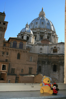 從教堂出來,先在前面拍張照片留念,不過兩怪搞了一陣才完成合照。之後在附近找了間專門外賣的比薩店買了兩塊比薩餅,坐在小廣場享受意大利午餐,因為下午預約了參觀梵蒂岡博物館,時間安排非常緊湊。